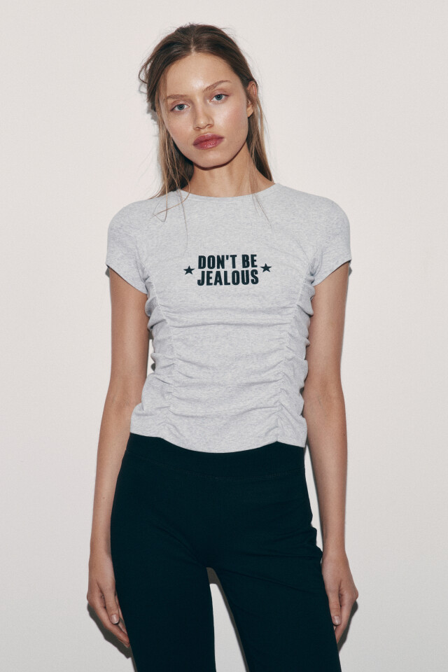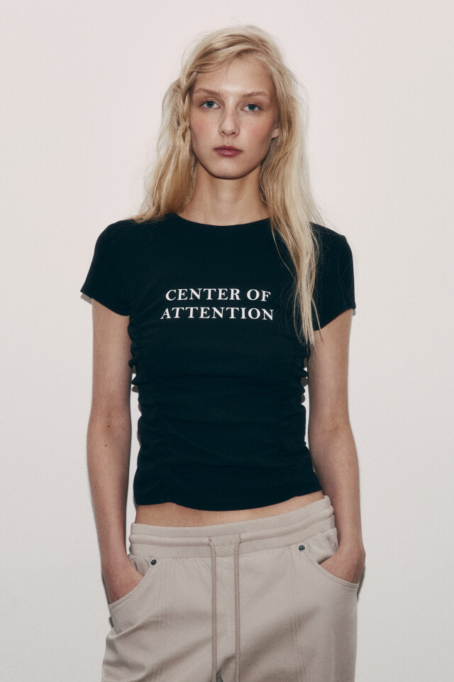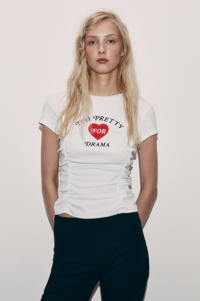 Футболка облегающая с драпировками и принтом
