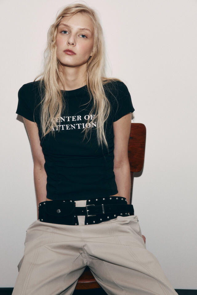 • Укороченная футболка. Подчеркивает талию, идеально смотрится с брюками и юбками с высокой и низкой посадкой.