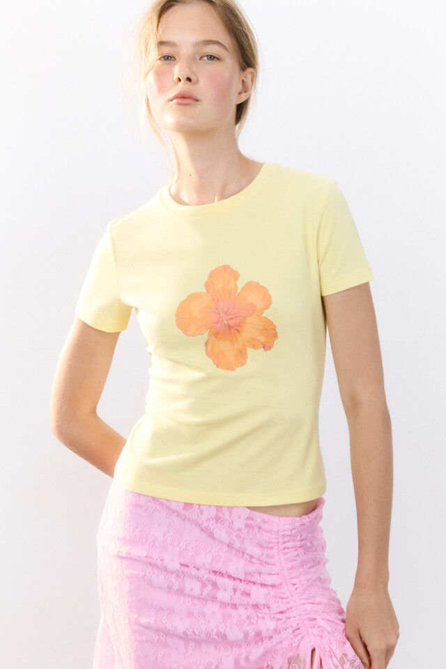 • Укороченная футболка. Подчеркивает талию, идеально смотрится с брюками и юбками с высокой и низкой посадкой.