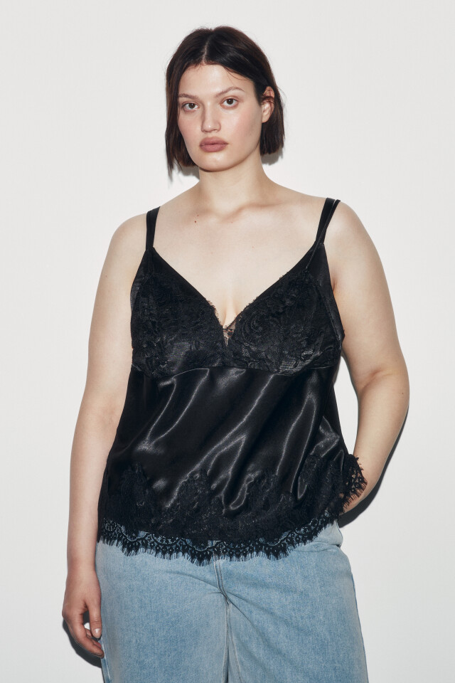 Майка-топ атласная с кружевом