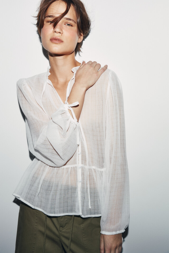 Блузка шифоновая с рукавами на завязках