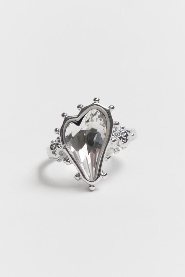 Кольцо серебристое с сердцем и кристаллом