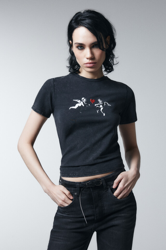 Футболка облегающая с принтом