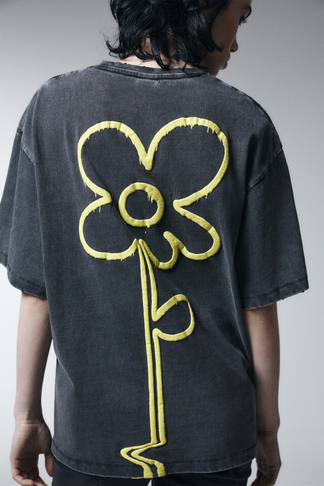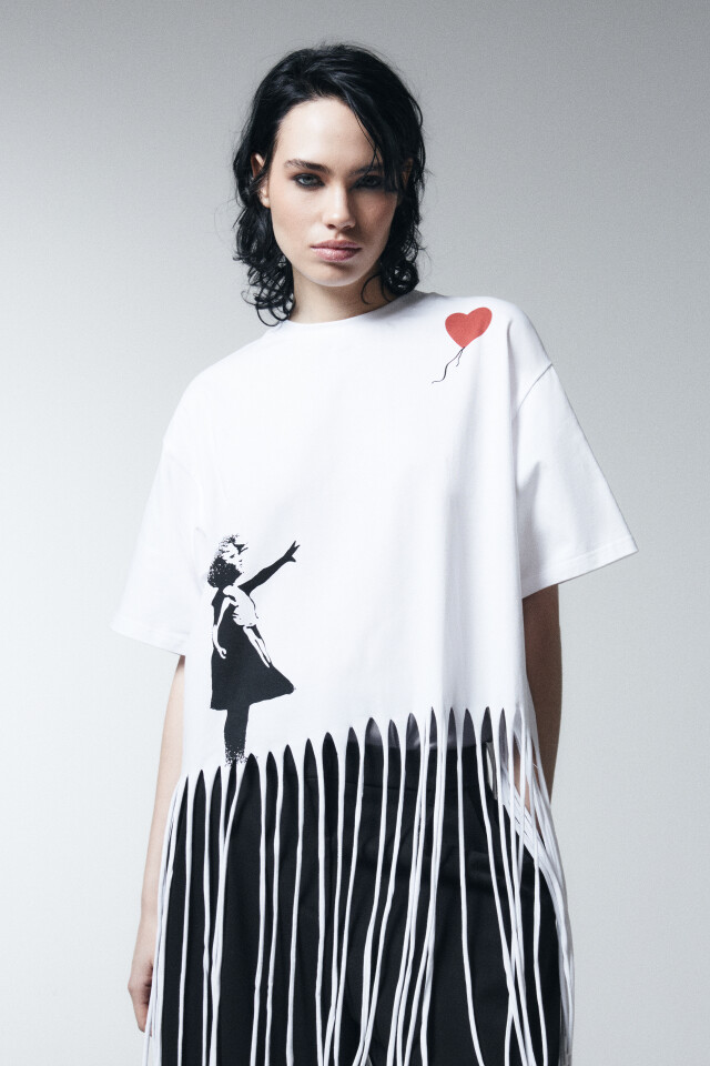 Футболка хлопковая oversize с принтом и бахромой