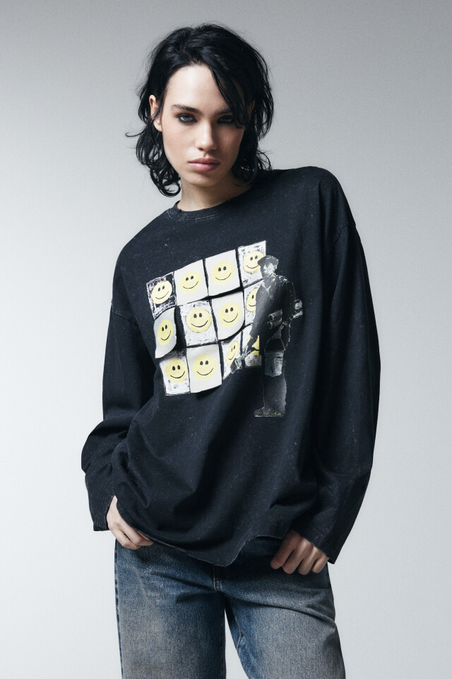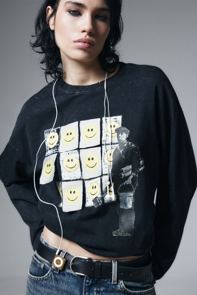 Лонгслив хлопковый с принтом
