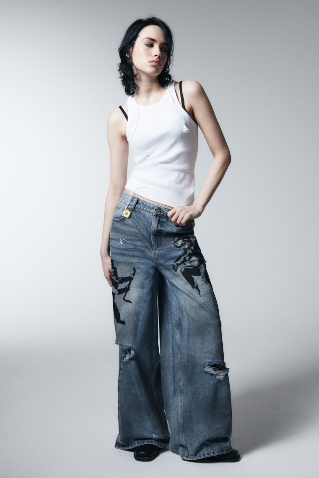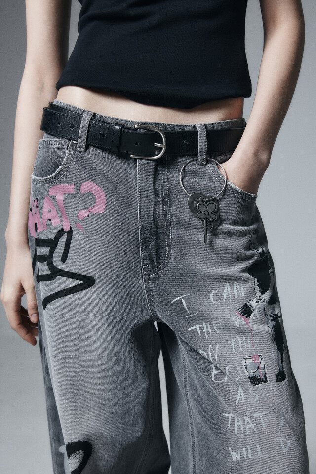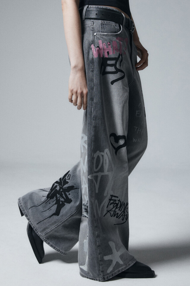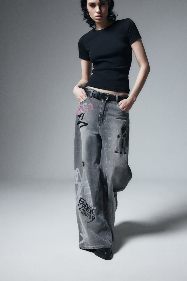 Джинсы baggy fit со средней посадкой и принтом
