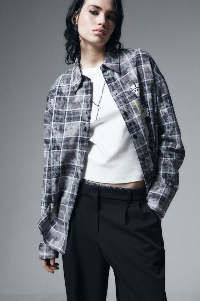 Рубашка с необработанными краями и принтом