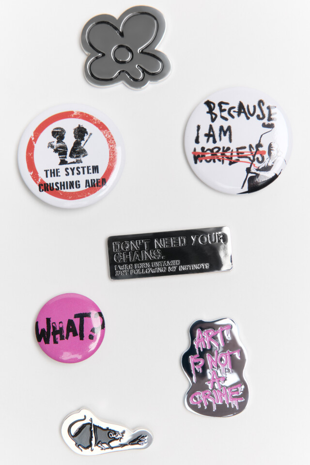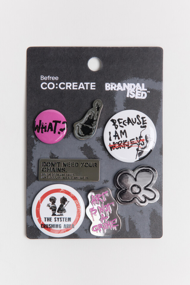Набор брошей с принтами и надписями (7 штук)