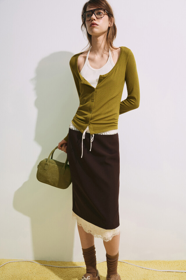 Еще один уютный фасон, который идеально подойдет в качестве второго слоя прохладными летними вечерами, — удлиненный кардиган. Это базовая модель, которая будет хорошо выглядеть и с юбкой, и с джинсами, и с костюмными брюками, и с платьем-комбинацией.
