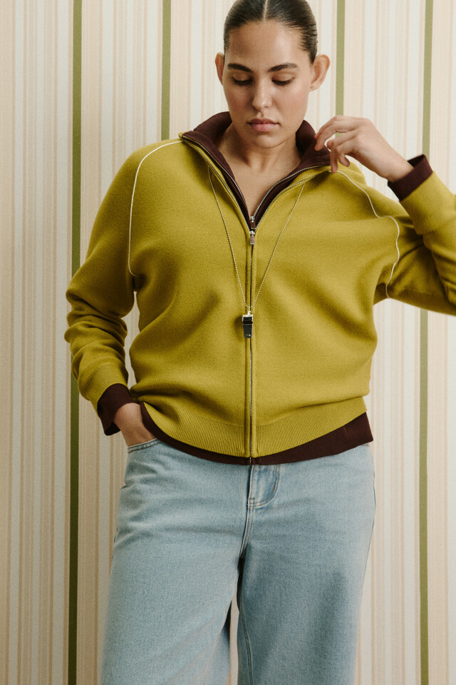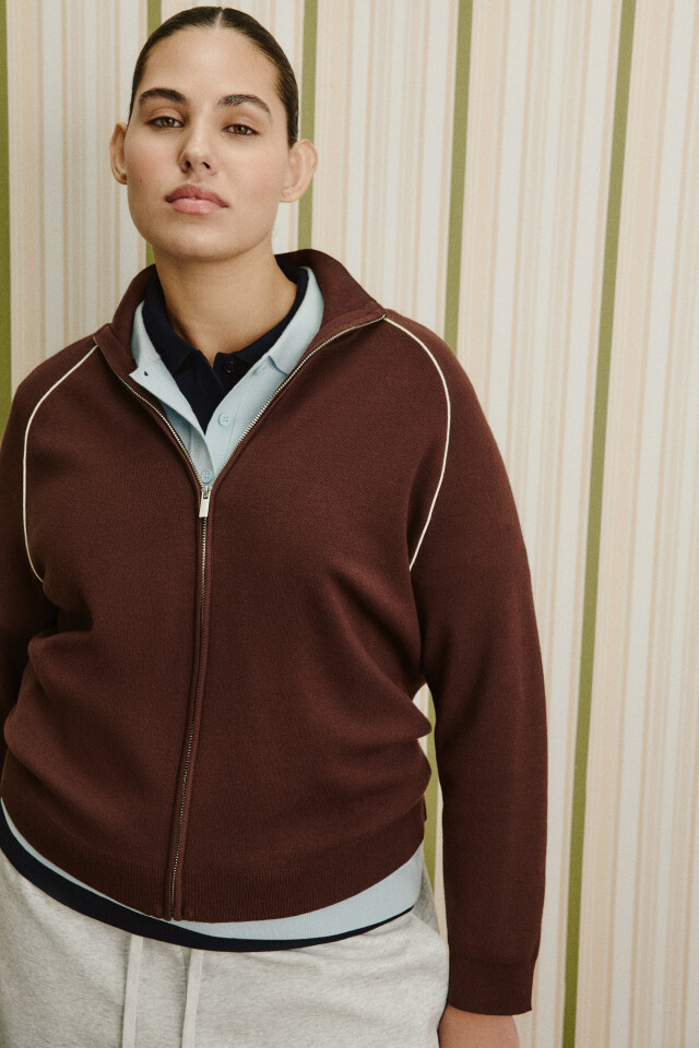 Если ты предпочитаешь повседневный или полуспортивный стиль, присмотрись к кардиганам на молнии. Такие модели идеально сочетаются с джинсами и кроссовками, а некоторые из них будут выигрышно смотреться и с джоггерами.