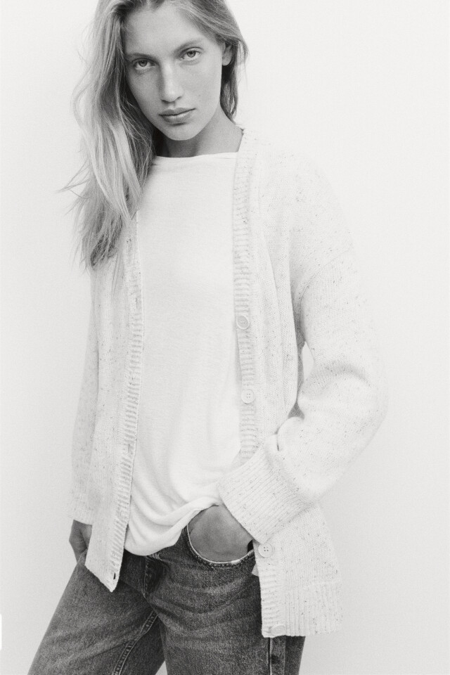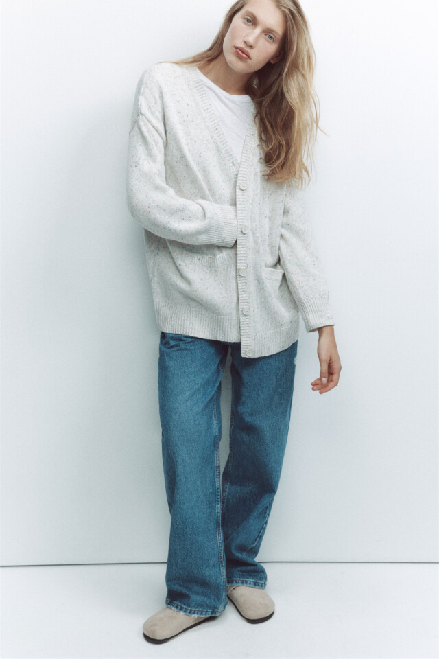 Вязаные кардиганы свободного кроя — это воплощение уюта и настоящее спасение в прохладные дни. Этот фасон ты можешь носить как самостоятельный верх или в качестве второго слоя на облегающую футболку или топ. Кстати, такой кардиган можно использовать и в качестве домашней одежды зимой — это прекрасная альтернатива худи и оверсайз футболкам.