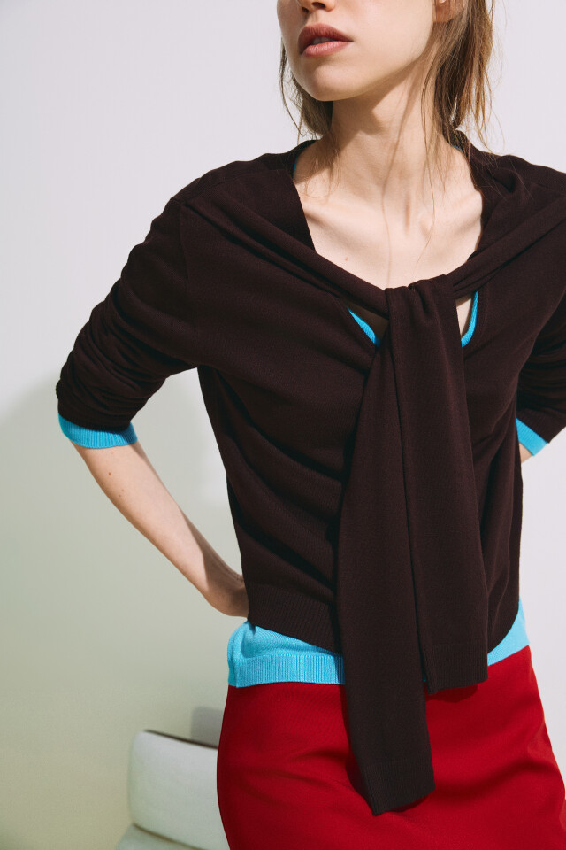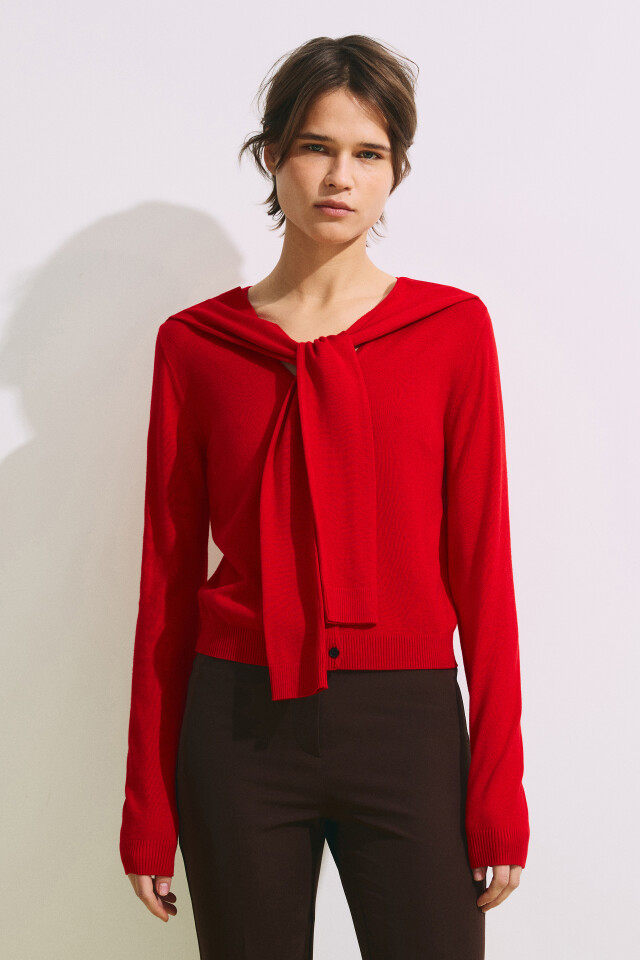 Кардиган вязаный с декоративными завязанными рукавами