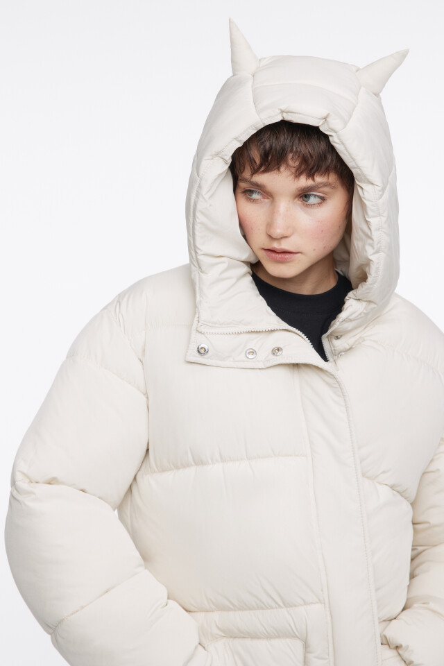 Куртка стеганая с поясом и ушками на капюшоне