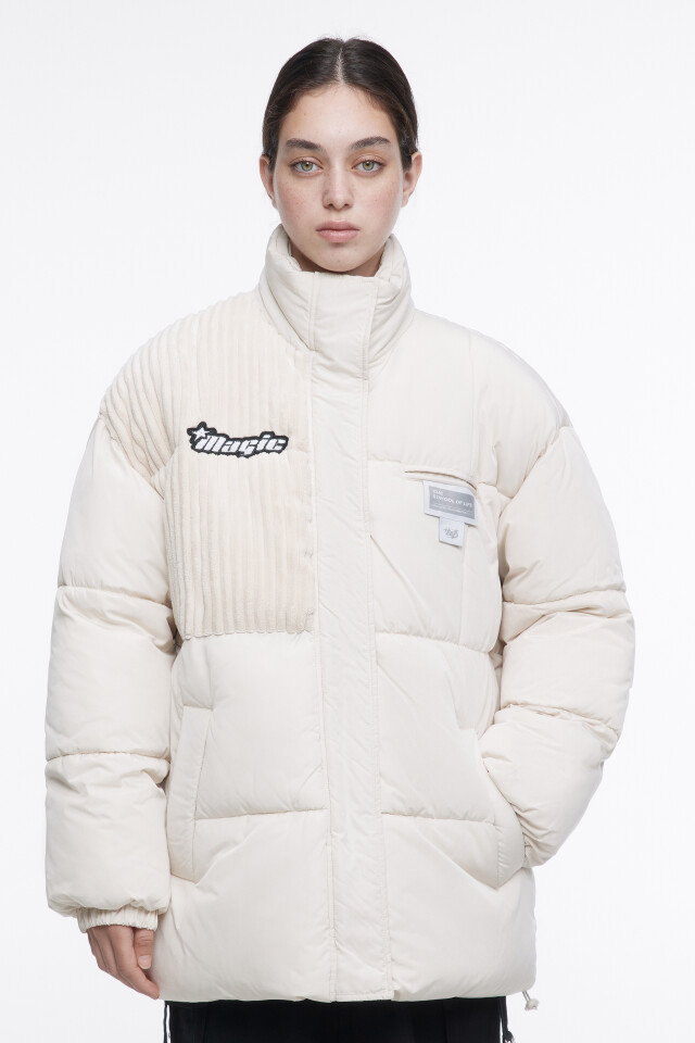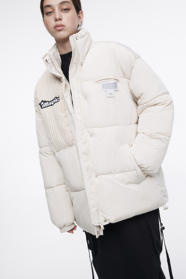 Куртка стеганая с принтом и вельветовой вставкой