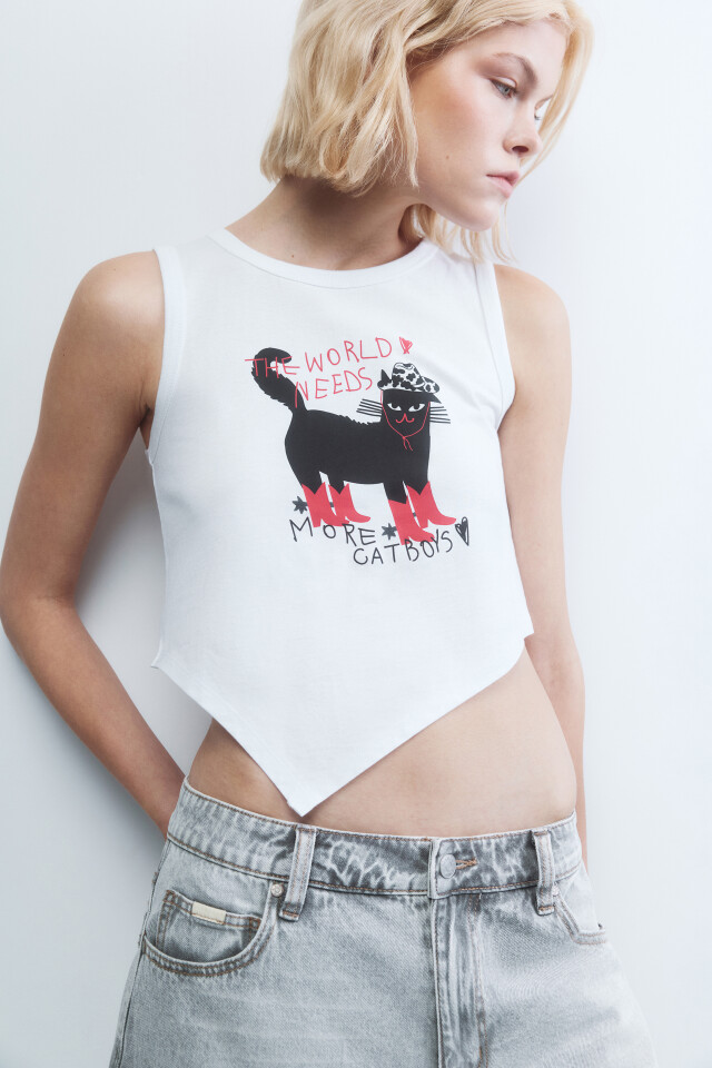 Если же ты ищешь майку на лето, обрати внимание на модели с принтами и декором: даже самым жарким летом они позволят выделиться из толпы и не перегреться. Оригинально выглядят и варианты из фактурной или рваной ткани: они сделают трендовым даже самый простой аутфит. Кстати, в каталоге ты можешь найти и майки с подкладкой на груди — это идеальное решение, когда в жару хочется отказаться от бра.