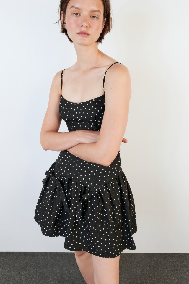 Платье-сарафан мини с воланом и бантиками