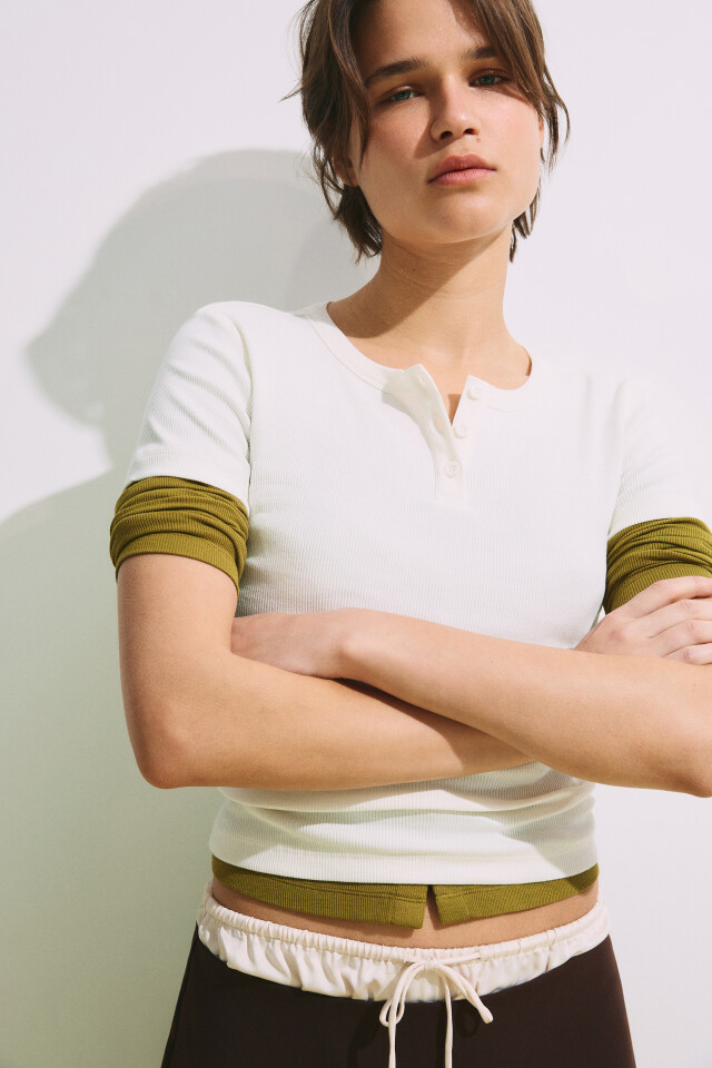 Футболка облегающая в рубчик с планкой