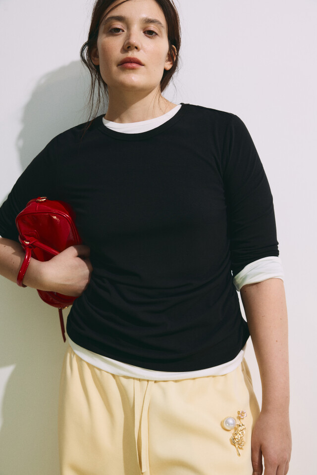 Лонгслив приталенный со сборками