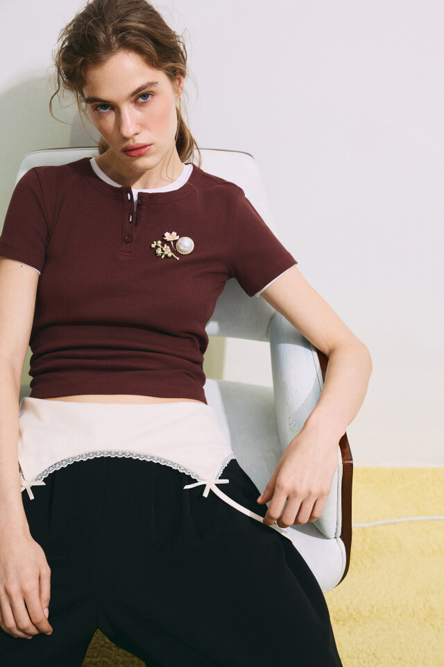 Футболка-поло вязаная с контрастным воротником