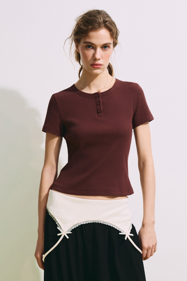 Футболка облегающая в рубчик с планкой