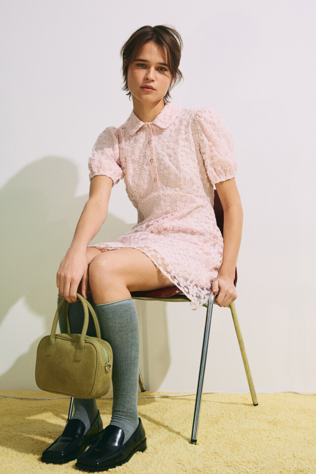 Платье-трапеция мини с цветочной вышивкой