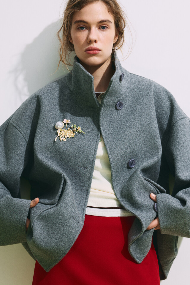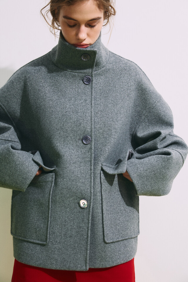 Полупальто драповое с воротником-стойкой