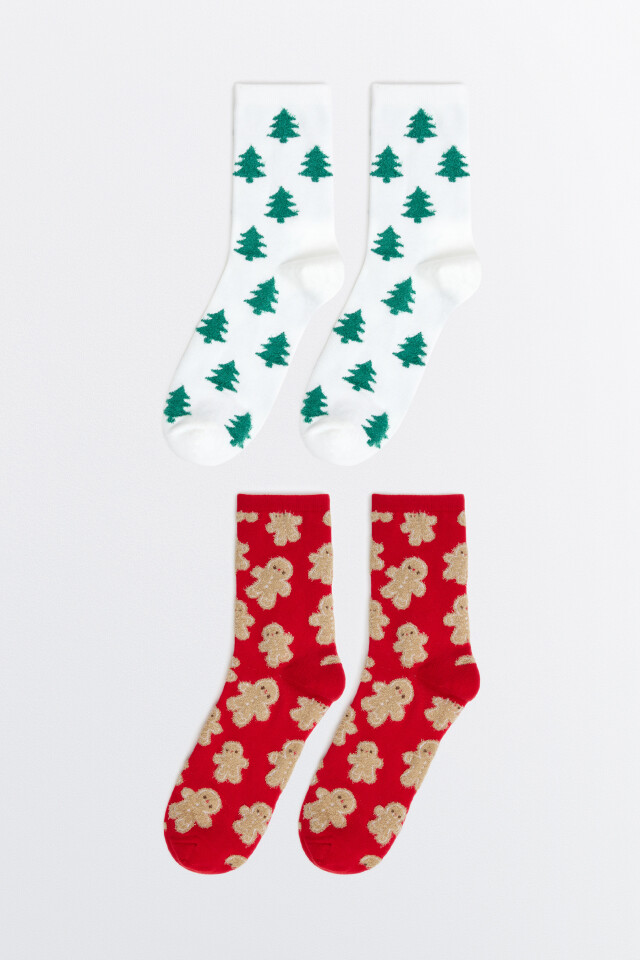 Набор носков с новогодней вышивкой (2 пары)