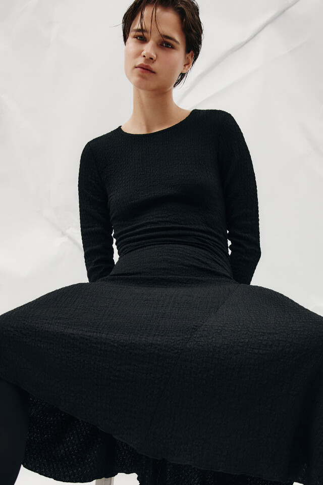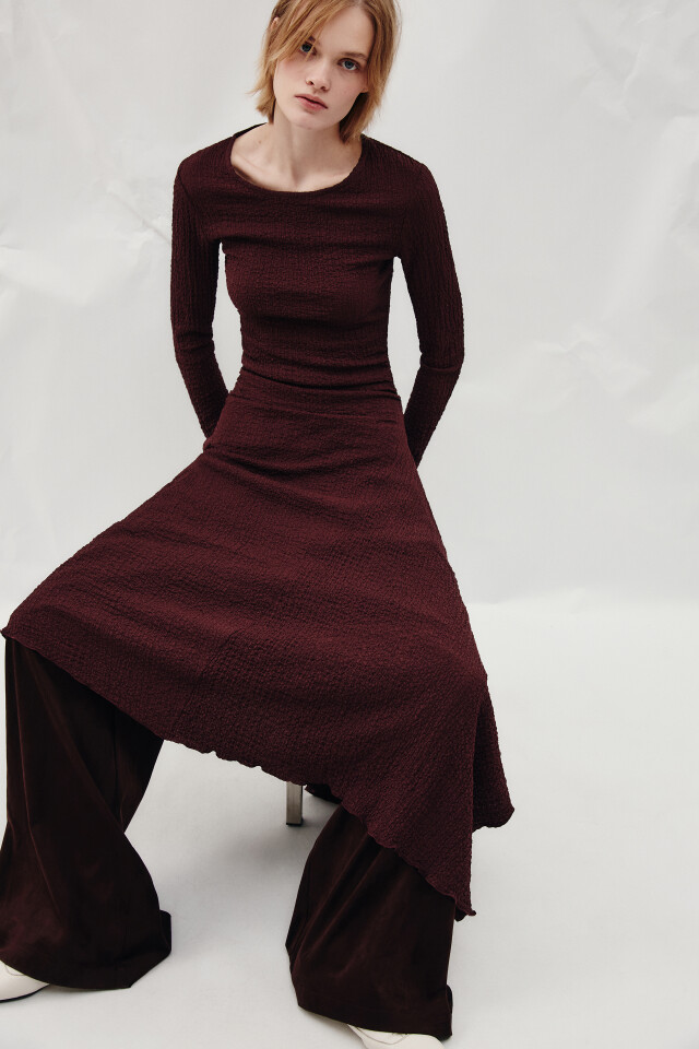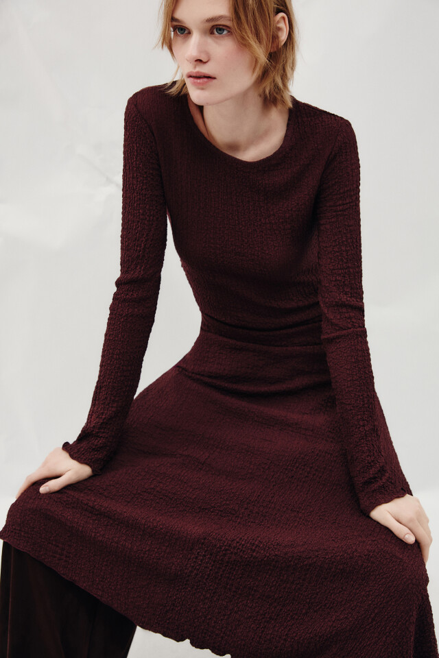 - Повседневные платья в рубчик. Они отлично подходят для образов в стиле casual. Носи их соло или сочетай с пиджаком или кардиганом — они поддержат и более строгое, и уютное настроение. Такие модели хорошо смотрятся и с грубыми сапогами или ботинками, и с уггами, и с кедами или кроссовками, и, конечно, с балетками. Настоящая находка для базового гардероба!