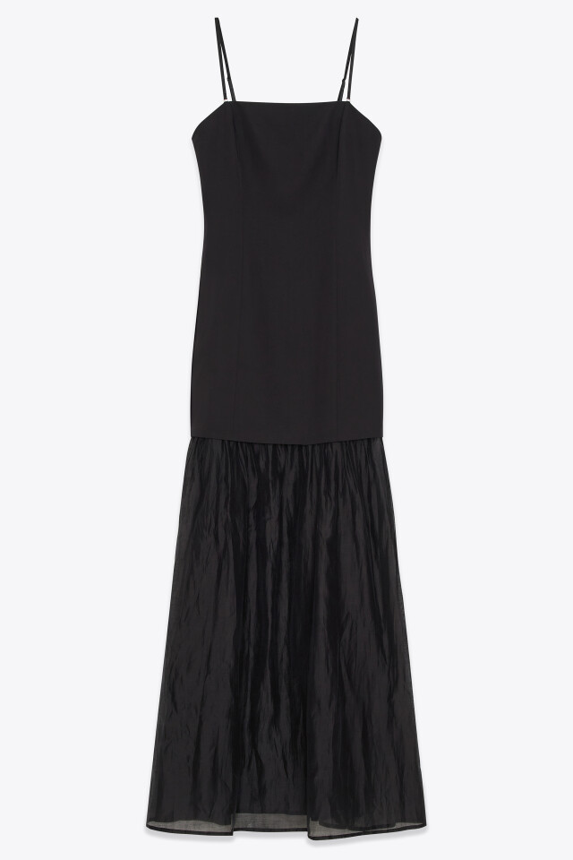 Платье-трапеция макси креповое на бретелях