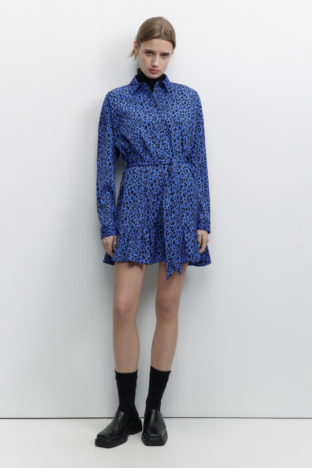 Платье-рубашка мини с принтом и поясом