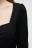 - Широкий прямоугольный вырез каре на груди и присборенный лиф, подчеркивающие зону декольте