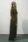 - Глубокий V-образный вырез горловины с завязками, длинные облегающие рукава с прямыми манжетами и прямой линией плеча, длинная юбка до щиколотки без разрезов и декоративных элементов