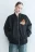- Черная куртка-бомбер с нашивками-надписями