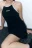 - Округлый вырез-американка на груди, низкая линия спины. Тонкие бретели, перекрещенные на спине, без регулировки по длине. Без застежки и декоративных элементов. Контрастная окантовка и маленький принт-логотип на груди