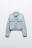 - Укороченная женская джинсовая куртка-рубашка свободного кроя из хлопкового денима с добавлением вискозы