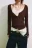 - V-образный вырез кардигана. Имитация майки с широким круглым вырезом и широкой бретелью на шее. Длинные облегающие рукава с прямыми манжетами и спущенной линией плеча. Застежка на пуговицы по всей длине спереди