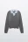 - V-образный вырез декольте, имитация второго контрастного слоя поло с отложным воротником на пуговицах. Длинные облегающие рукава с эластичными манжетами в рубчик, спущенная линия плеча. Застежка на пуговицы спереди. Прямой нижний край в рубчик