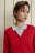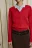 - V-образный вырез декольте, имитация второго контрастного слоя поло с отложным воротником на пуговицах. Длинные облегающие рукава с эластичными манжетами в рубчик, спущенная линия плеча. Застежка на пуговицы спереди. Прямой нижний край в рубчик
