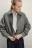 - Короткий женский бомбер свободного кроя из теплой драповой ткани с добавлением вискозы и натуральной шерсти и с приятной к телу подкладкой