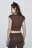 Футболка-топ домашняя приталенная с надписью - цвет коричневый - 5Футболка-топ домашняя приталенная с надписью - цвет коричневый - 5