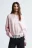 - Округлый вырез горловины. Длинные свободные рукава с эластичными манжетами в рубчик и спущенной линией плеча. Прямой нижний край на резинке в рубчик с кружевной вставкой