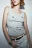 - Глубокий круглый вырез горловины, широкая спинка-борцовка. Широкие бретели без регулировки по длине. Декор из металлических люверсов. Прямой нижний край без разрезов