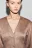 - V-образный вырез декольте. Длинные объемные рукава со спущенной линией плеча и прямыми манжетами. Застежка на потайные кнопки по всей длине. Закругленный спереди нижний край, декоративные объемные швы