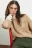 - Круглый вырез горловины без воротника. Длинные свободные рукава со спущенной линией плеча и прямыми манжетами. Прямой нижний край в рубчик без разрезов и декоративных элементов