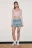 - Глубоки V-образный вырез декольте на завязках. Длинные облегающие рукава со спущенной линией плеча и волнистыми манжетами. Асимметричный волнистый нижний край