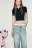 - Женская укороченная футболка-поло облегающего кроя из мягкой ткани на основе вискозы с фактурой в рубчик