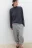 - Круглый вырез горловины с коротким воротником-стойкой в рубчик. Длинные свободные рукава с широкими манжетами в рубчик и спущенной линией плеча. Прямой нижний край в рубчик без разрезов