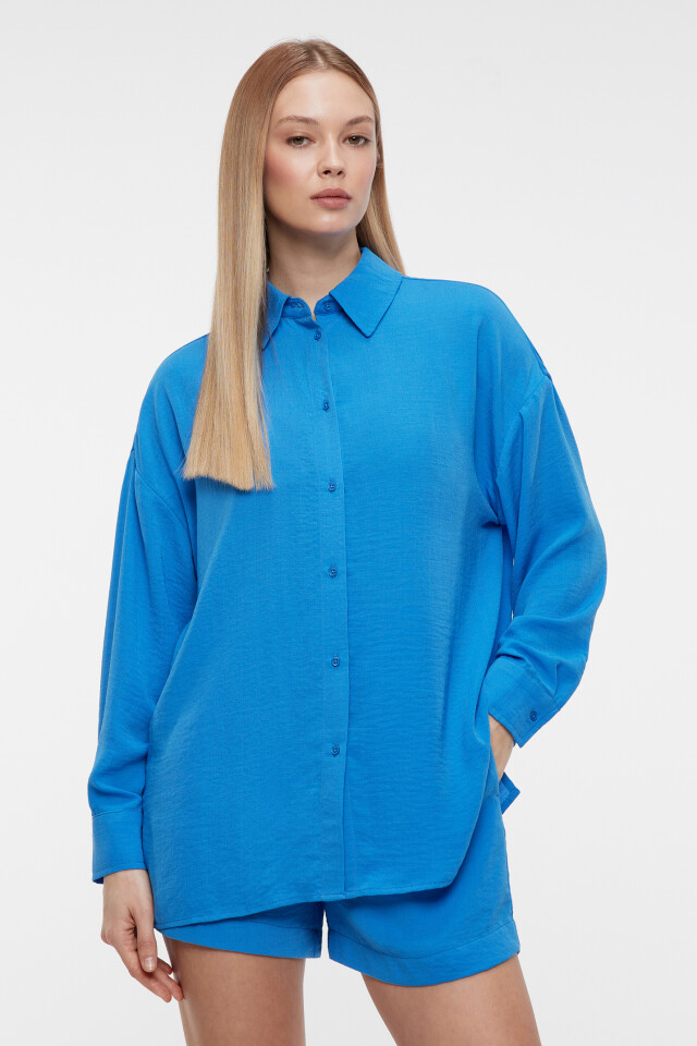 Блузка-рубашка oversize однотонная с мятым эффектом