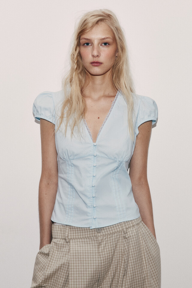 Рубашка приталенная хлопковая с рукавами-крылышками