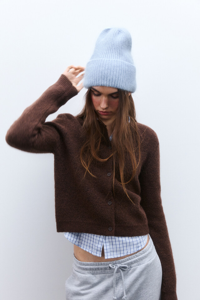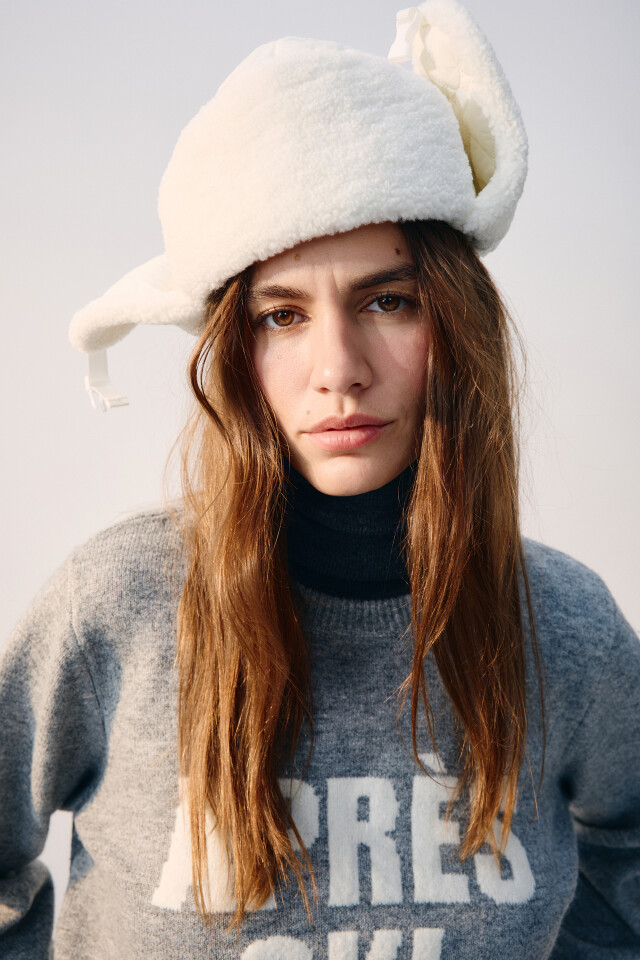 Шапка-бини вязаная с принтом в стиле лопапейса